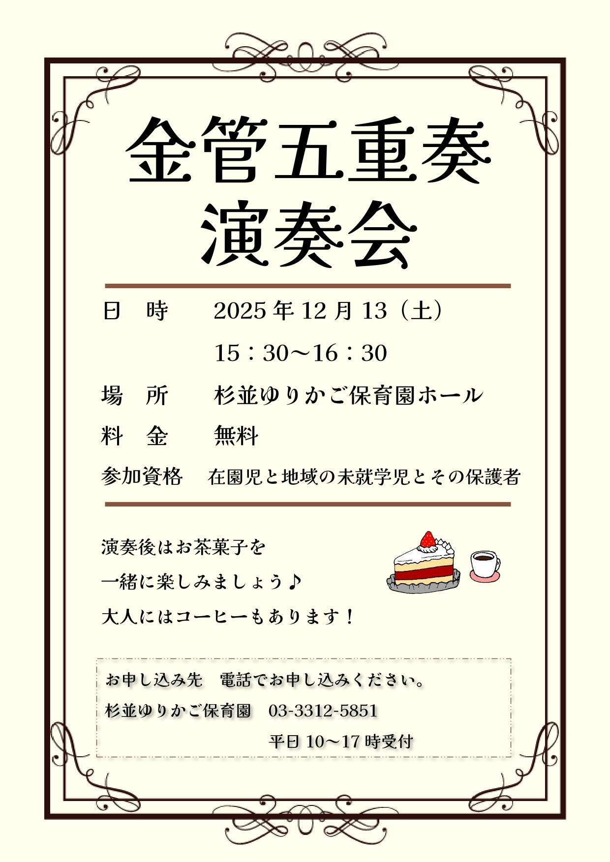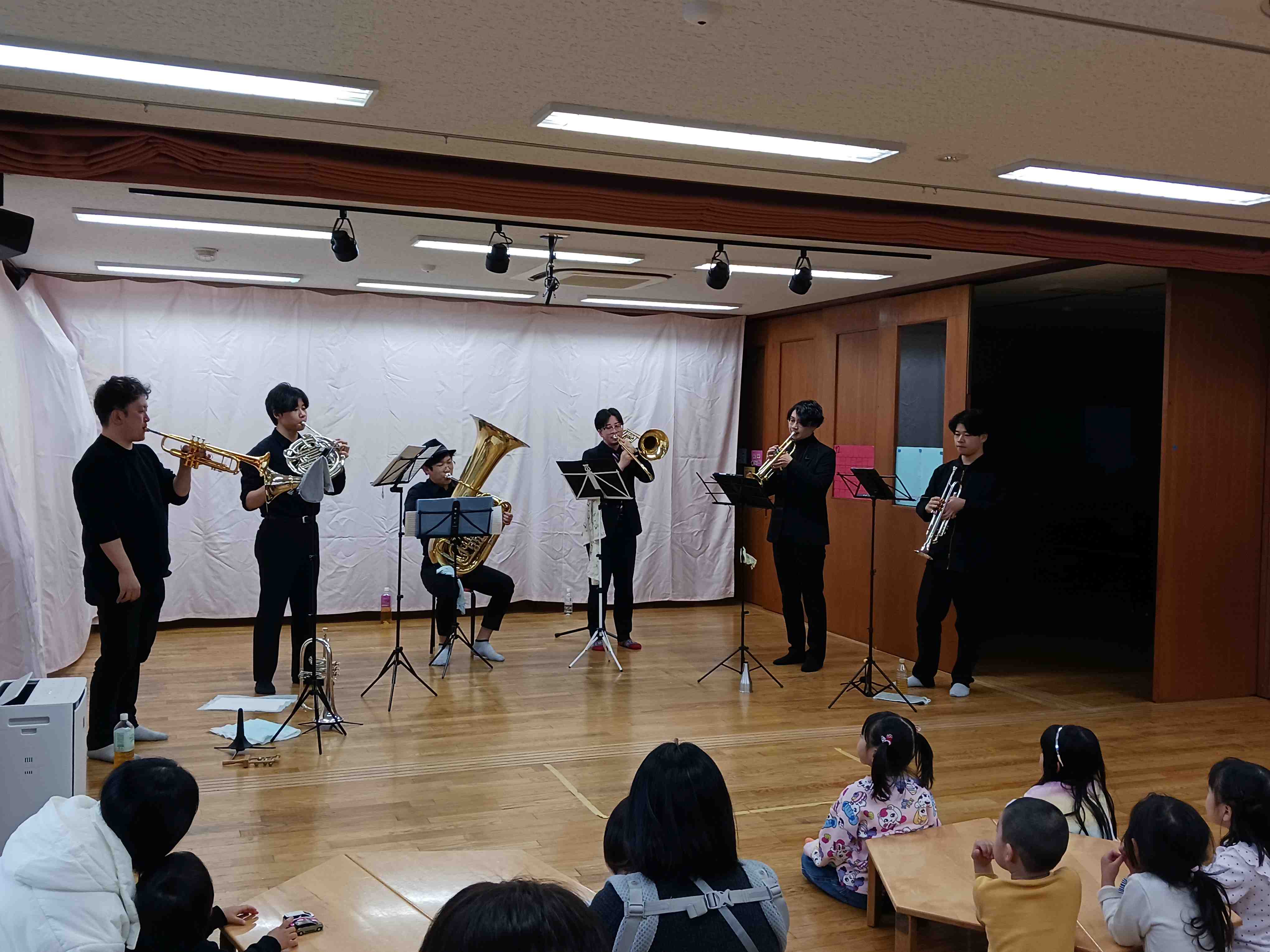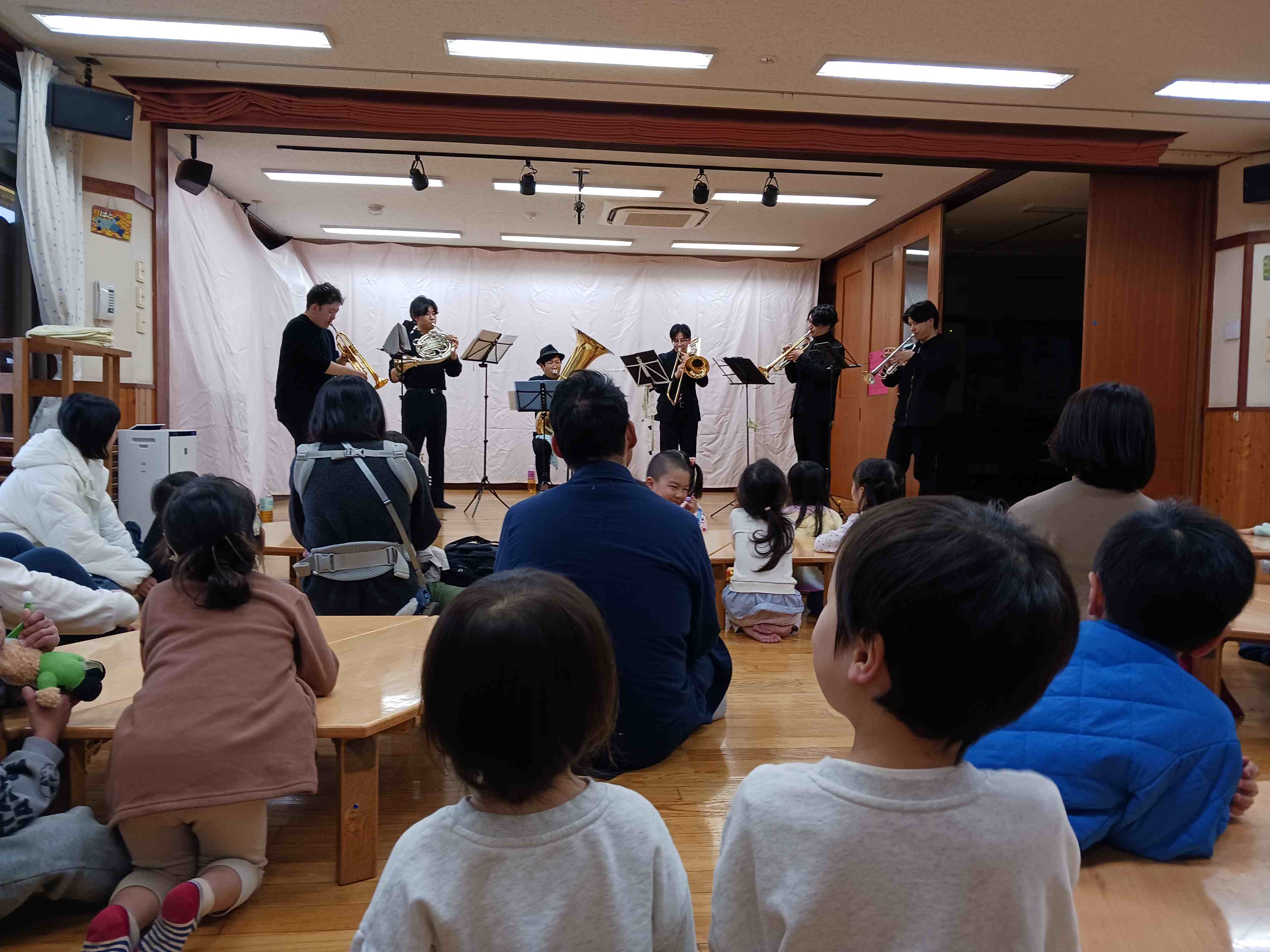 ※好評につき、終了しました。明日はゆりかご保育園のホールで金管五重奏の演奏会を