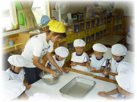 | 13:00 | 午睡 | 3歳児のみ午睡 外遊び・課題活動 |
