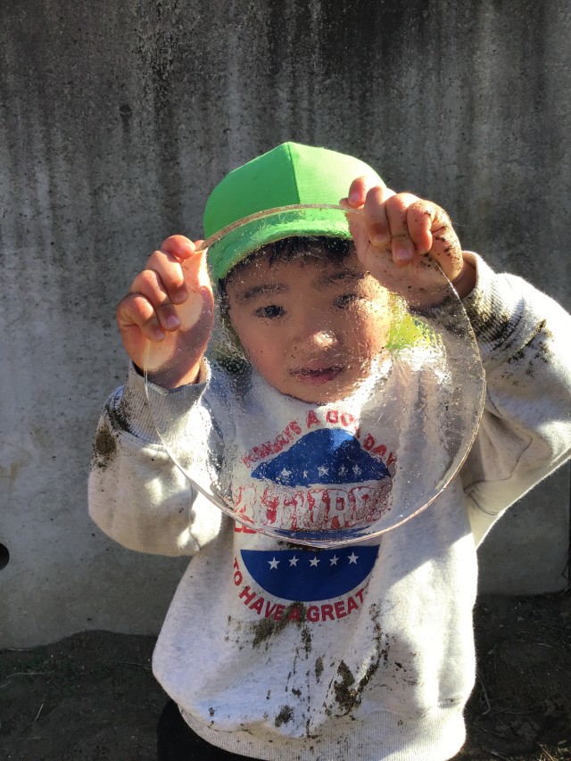 みんなでバケツに水を入れたりしてまた氷❄️ができるのを楽しみにしている子どもたちです🍃