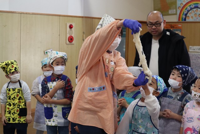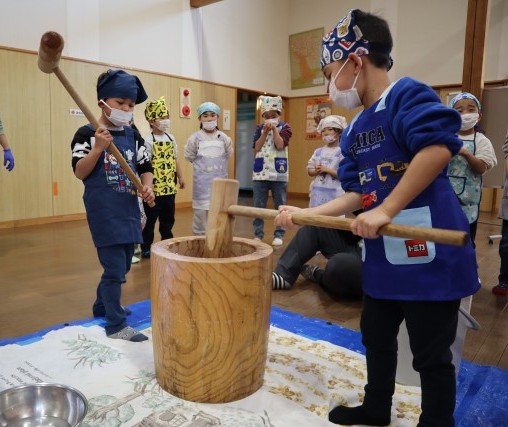 最後は、園長先生と担任の先生でお餅ができあがりました💪