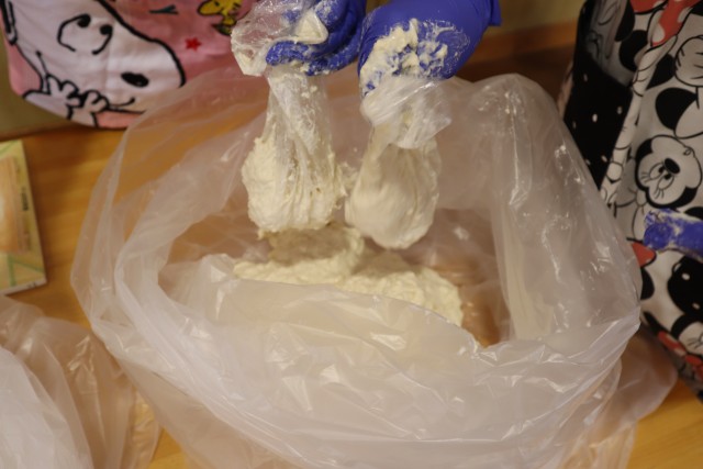 「あったかーい。」「にゅるってする。」「粉がなくなってきた。」など