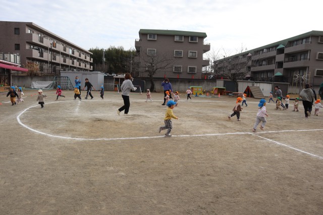 耐寒マラソンを行いました‼12月下旬ごろから、園庭を走っていた子どもたち😊